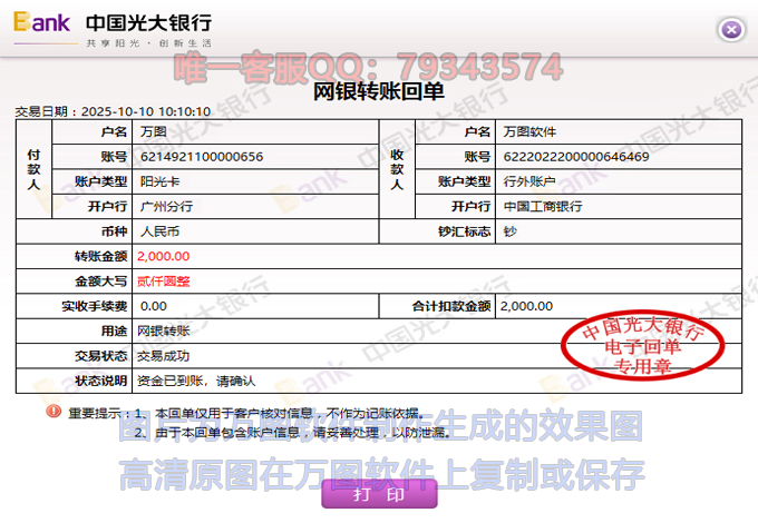 1、输入数据一键生成同行、跨行、对公、对私的银行图,收款方支持所有全国所有银行。