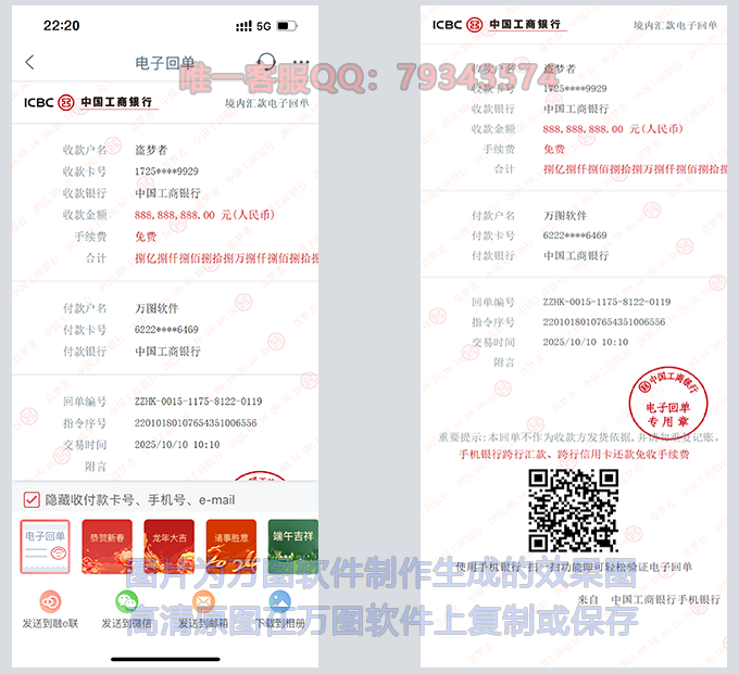 1、输入数据一键生成同行、跨行、对公、对私的银行图,收款方支持所有全国所有银行。
