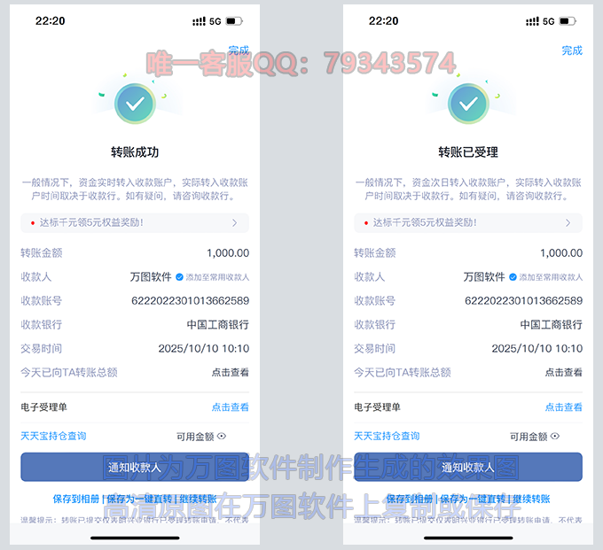 1、输入数据一键生成同行、跨行、对公、对私的银行图,收款方支持所有全国所有银行。