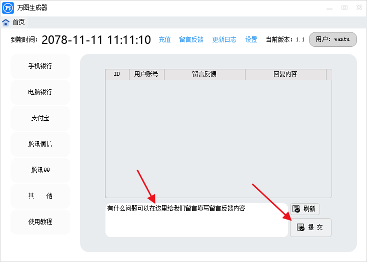 2、点击留言反馈,填写您要留言的内容后,再点击提交。
