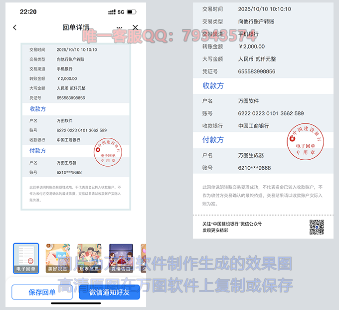 1、输入数据一键生成同行、跨行、对公、对私的银行图,收款方支持所有全国所有银行。