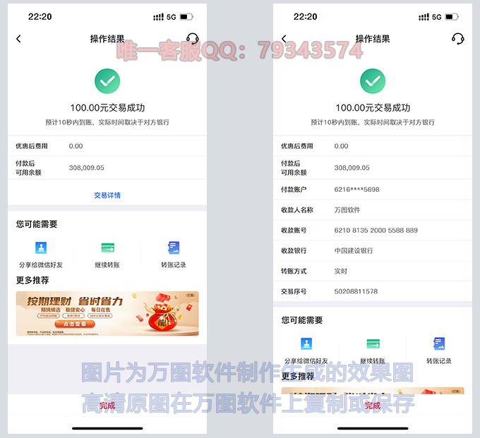 1、输入数据一键生成同行、跨行、对公、对私的银行图,收款方支持所有全国所有银行。